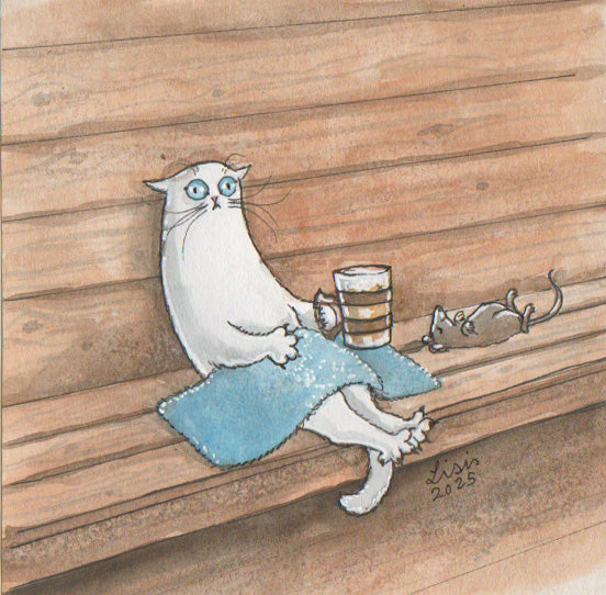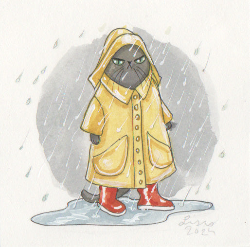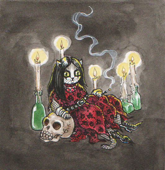 Signed original illustrations from the Cat Packs card game published by All Or None Games.