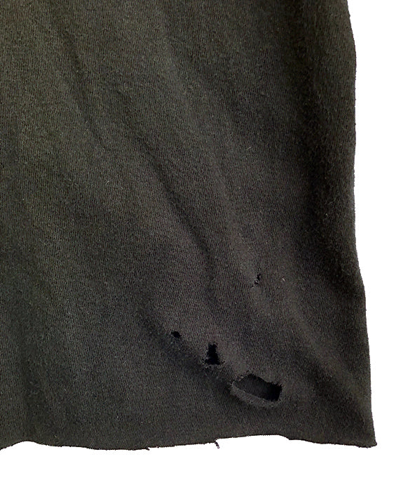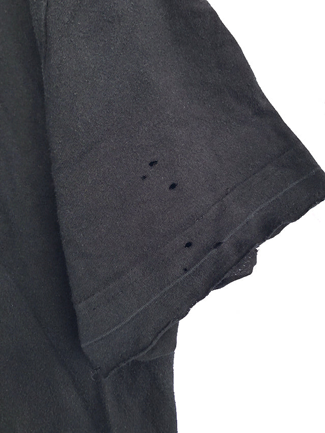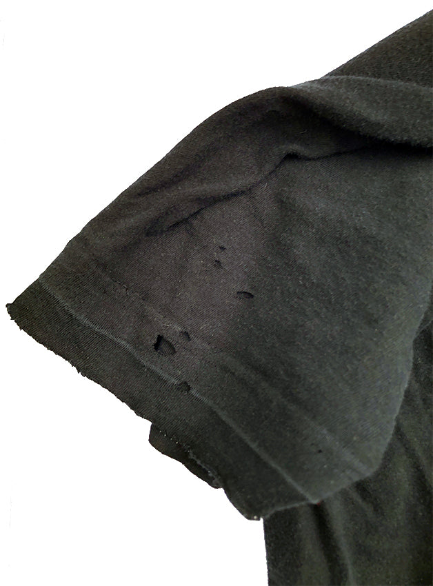 Style: Soft cotton with some stretch, the sleeves and bottom are unhemmed, and small “gnawed” holes have been purposely scattered across the sleeves and front of the shirt